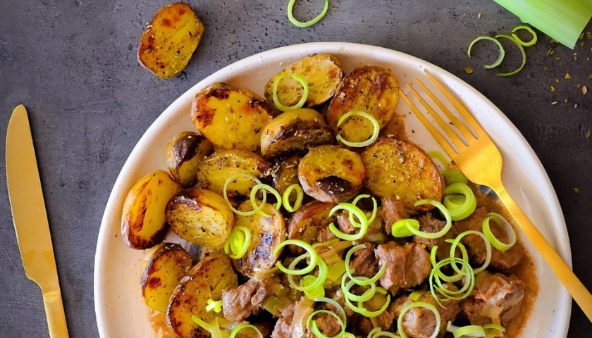 Když je maso měkké, tak přidáme pórek a ještě 10 minut provaříme.