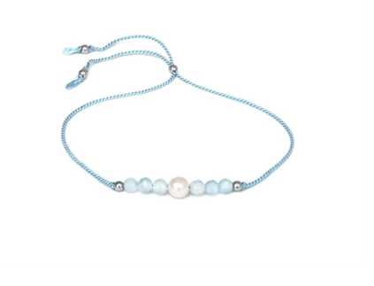 Šňůrkový náhrdelník s akvamarínem a říční perlou