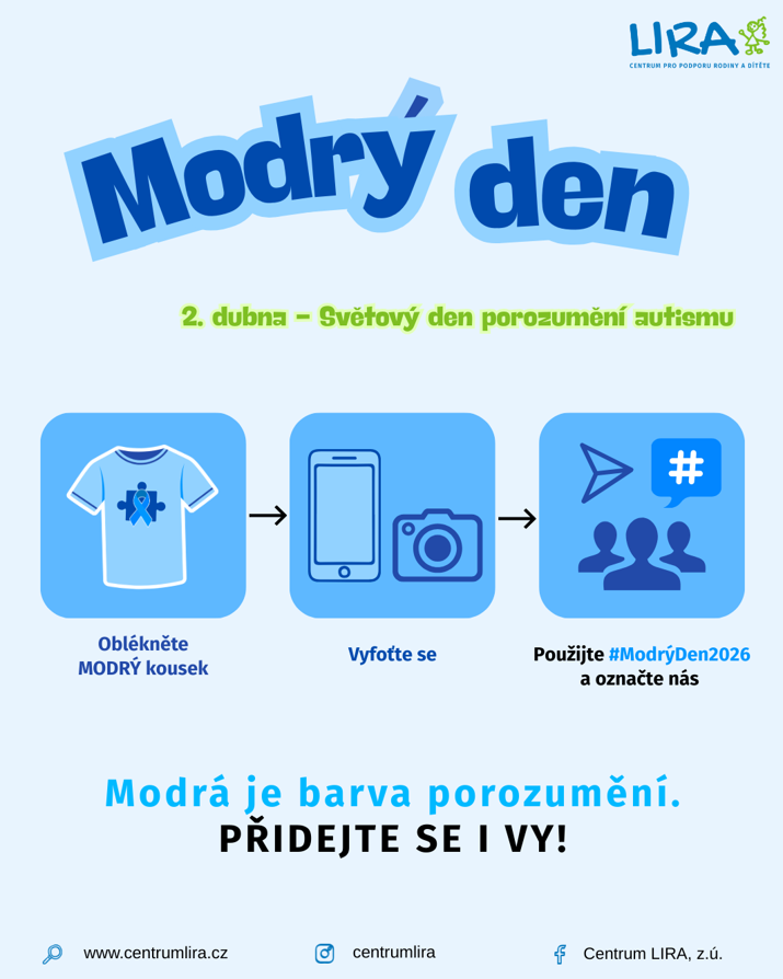 Den porozumění autismu připadá každoročně na 2. dubna. K tomuto datu se váže iniciativa Modrý den, kterou pořádá Centrum LIRA. Tato organizace dlouhodobě pečuje o rodiny s dětmi s autismem a téma inkluze a osvěty je přirozenou součástí její práce.